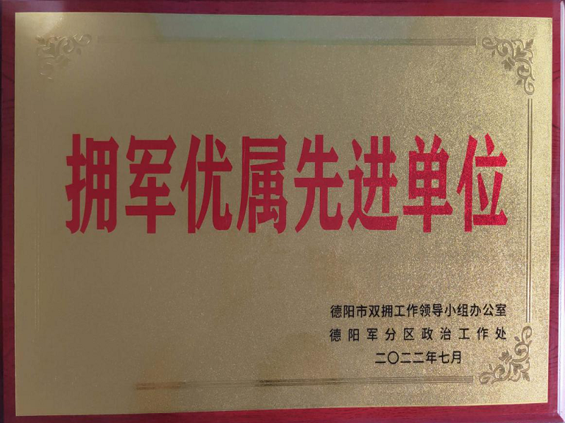 • 德陽(yáng)市雙擁工作領(lǐng)導(dǎo)小組辦公室、德陽(yáng)軍分區(qū)政治工作處授予中江公司2022年度“擁軍優(yōu)屬先進(jìn)單位”榮譽(yù)稱號(hào)