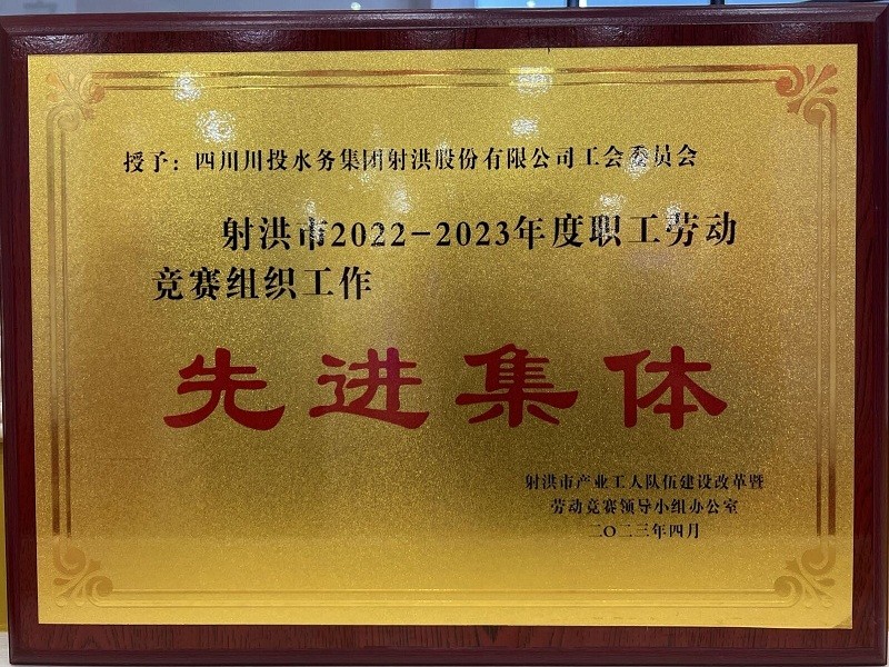 • 射洪市產(chǎn)業(yè)工人隊(duì)伍建設(shè)改革暨勞動(dòng)競(jìng)賽領(lǐng)導(dǎo)小組辦公室授予射洪公司2022-2023年度“勞動(dòng)競(jìng)賽組織先進(jìn)集體獎(jiǎng)“榮譽(yù)稱號(hào)