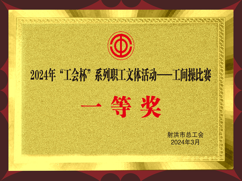 • 射洪市總工會(huì)授予射洪公司2024年度“工會(huì)杯”系列職工文體活動(dòng)—工間操比賽一等獎(jiǎng)