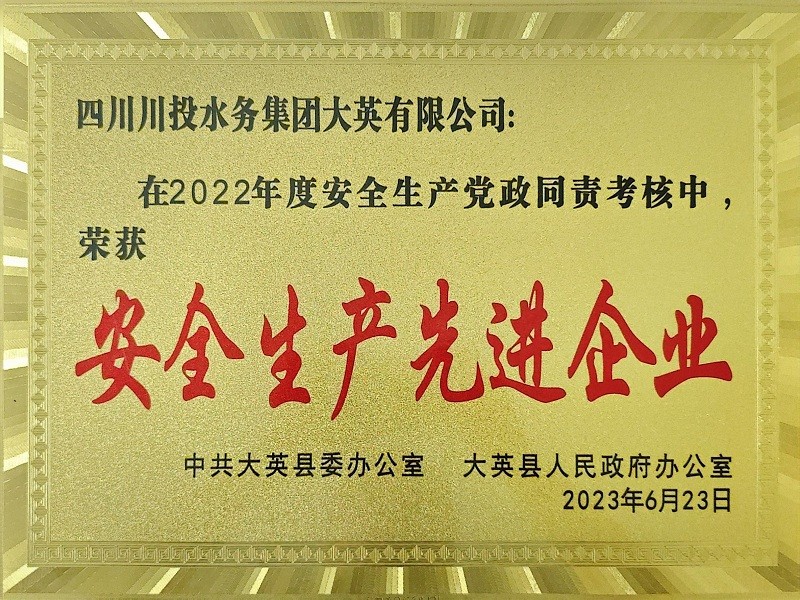 • 中共大英縣委辦公室、大英縣人民政府辦公室授予大英公司2022年度“安全生產(chǎn)工作先進(jìn)企業(yè)”榮譽(yù)稱號(hào)