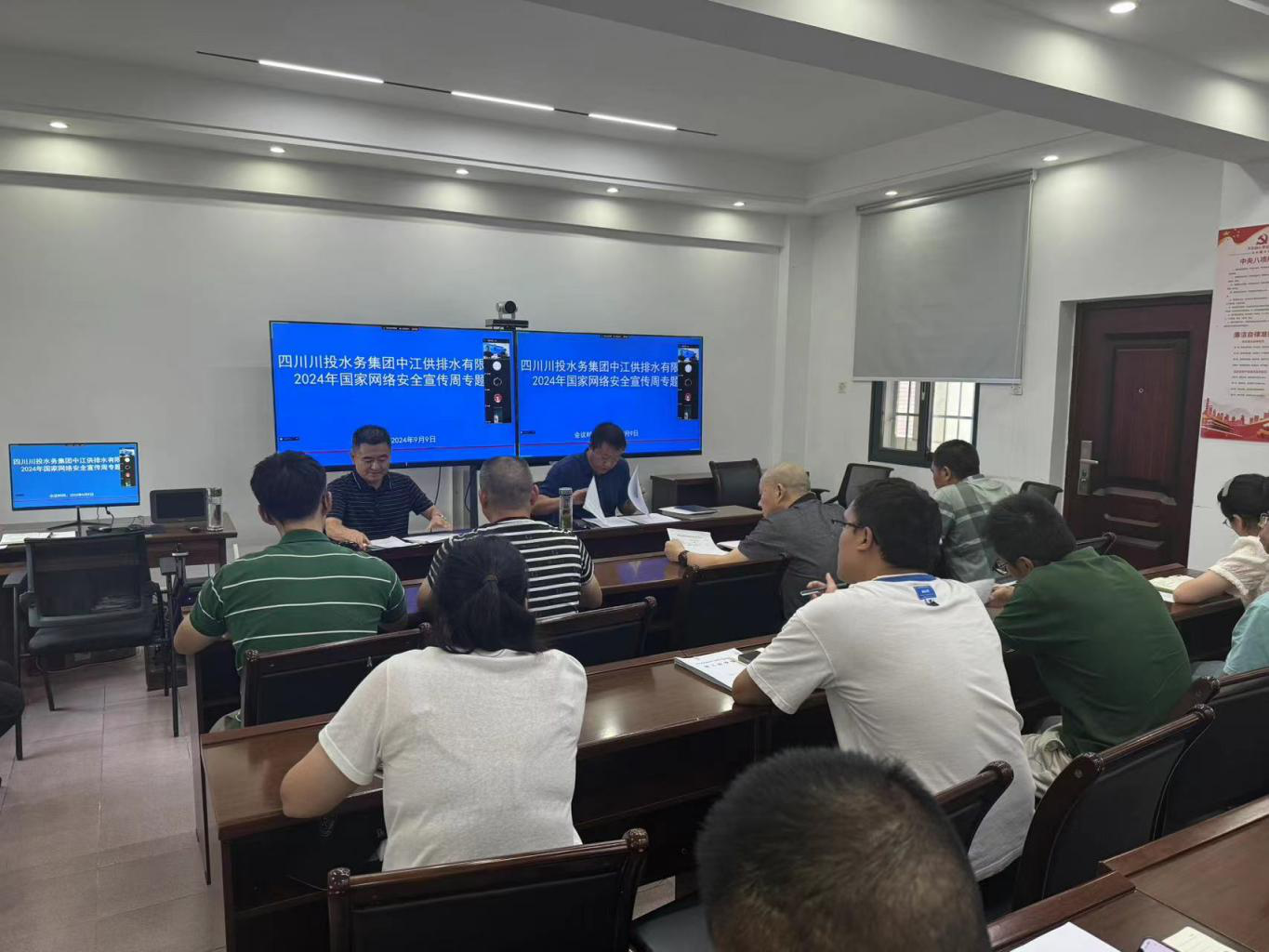 9月9日下午,中江水司黨支部組織公司班組長及以上管理人員,深入學習《習近平總書記關于網絡強國的重要思想概論》第一章以及《網絡安全法》,集中觀看2024年國家網絡安全宣傳周微視頻,通過公司微信群,轉載發(fā)布網絡安全法律知識、網絡安全小貼士,并通過各廠LED電子顯示屏,持續(xù)向廣大干部職工宣傳網絡安全理念,普及網絡安全知識。