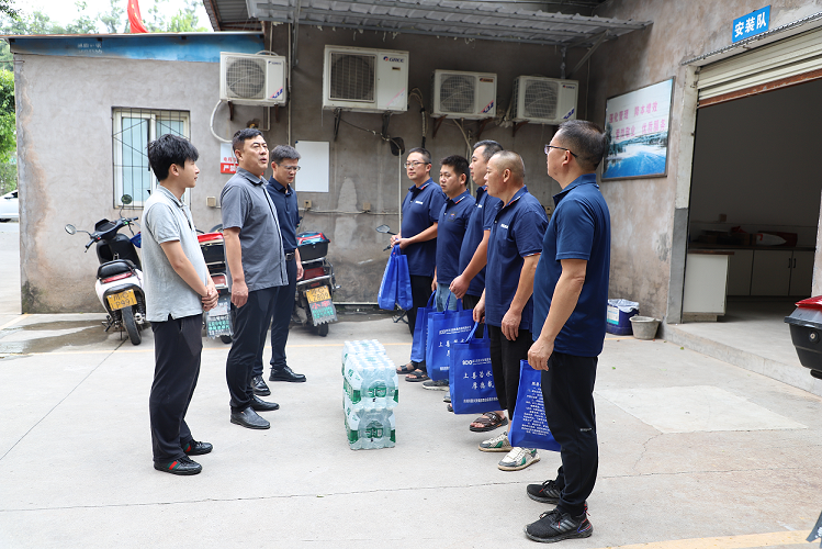 支部書記、執(zhí)行董事龔慶一行深入公司廠區(qū)、安裝維修隊及客戶服務中心,為一線職工送去了藿香正氣液、板藍根、風油精、葡萄糖口服液、礦泉水等防暑降溫物資,與職工們親切交談,詳細詢問他們的工作和生活情況。同時囑咐大家要注意勞逸結(jié)合,合理安排工作時間,做好防暑降溫措施,并強調(diào)當前正值汛期,生產(chǎn)廠區(qū)要做好防汛措施,加強雷電天氣設施設備安全檢查,確保正常運行。
