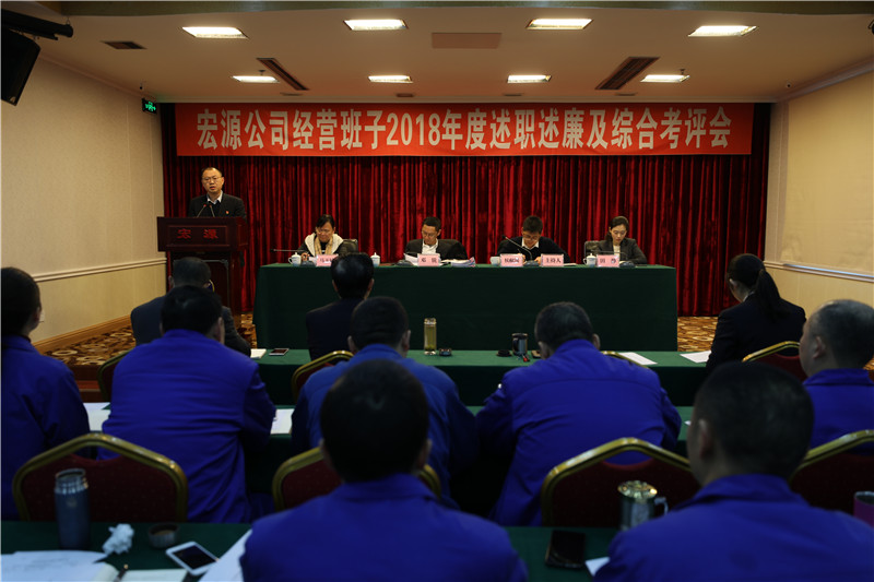 2019年2月1日上午8:30,在春節(jié)即將來臨之際,川投水務(wù)集團(tuán)黨委副書記、總經(jīng)理鄧銳率綜合部經(jīng)理侯獻(xiàn)國、安全環(huán)保部經(jīng)理馬玉斌、紀(jì)檢監(jiān)察部主任田靜一行到宏源公司進(jìn)行2018年度綜合考評。宏源公司班子成員、中層管理人員、中心組學(xué)員70余人參加考評,23名青年員工列席會議。