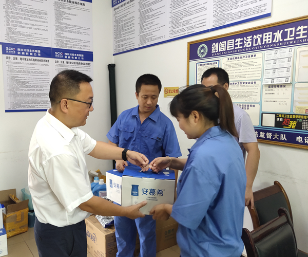 韓名泉說(shuō)到:“今年夏季,高溫濕熱天氣持續(xù)不斷、山洪多發(fā)、普安原水供應(yīng)緊缺,但公司全體干部職工沒(méi)有退縮,大家頂著烈日、淋著暴雨、忍受著‘桑拿’天氣,立足本職保供水,順利完成了下寺鎮(zhèn)窯溝社區(qū)200毫米過(guò)河管道搶修工程等重大供水保水任務(wù)。在此我代表工會(huì)、代表公司黨政領(lǐng)導(dǎo)班子向大家表示感謝,正是有了你們默默地付出,劍閣公司才能一次次經(jīng)受住暴雨山洪的考驗(yàn),持續(xù)為劍閣人民提供優(yōu)質(zhì)的自來(lái)水。防暑降溫物品雖不貴重,但是它代表了工會(huì)對(duì)大家的關(guān)心,今后工會(huì)將繼續(xù)加強(qiáng)職工勞動(dòng)保護(hù),當(dāng)好職工的‘娘家人’!”